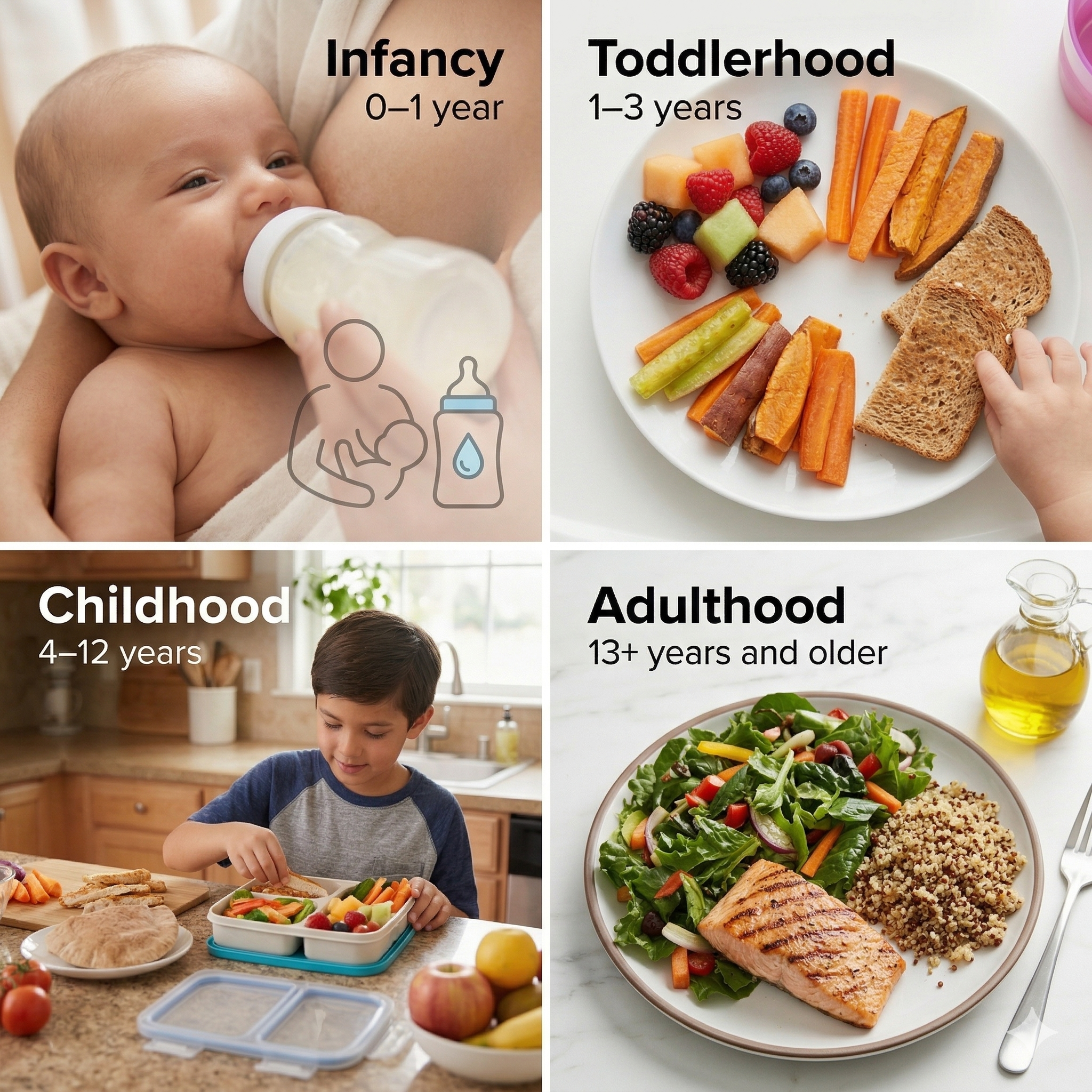 “Every age needs different nutrition. This guide gives you the exact food your child needs at every stage, from newborn to 8 years.”
